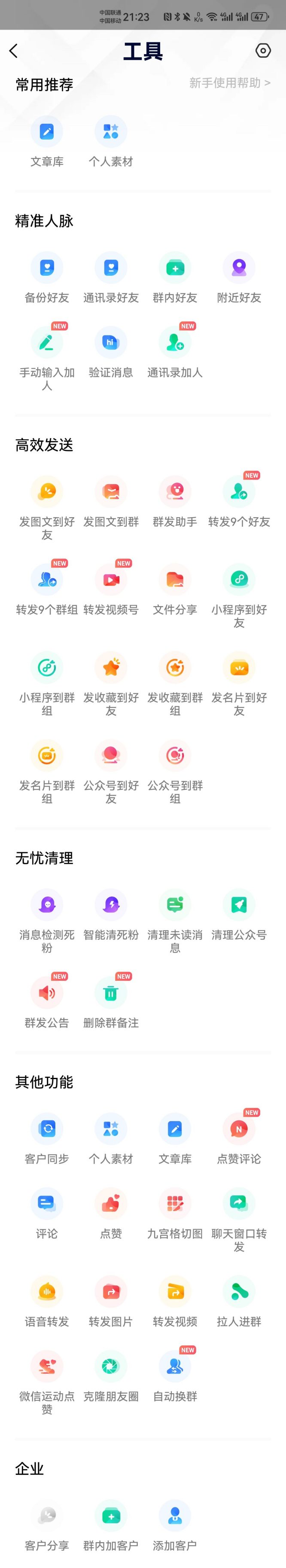 5. 微信营销辅助:针对微商或营销人员,提供自动加好友、群发消息、数据分析等功能,提高营销效率